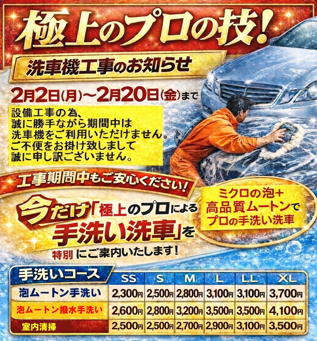 - <洗車受付時間>9:00~18:30