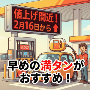 値上げ前にぜひ、セルフ高岡店で満タン給油をお済ませください。
