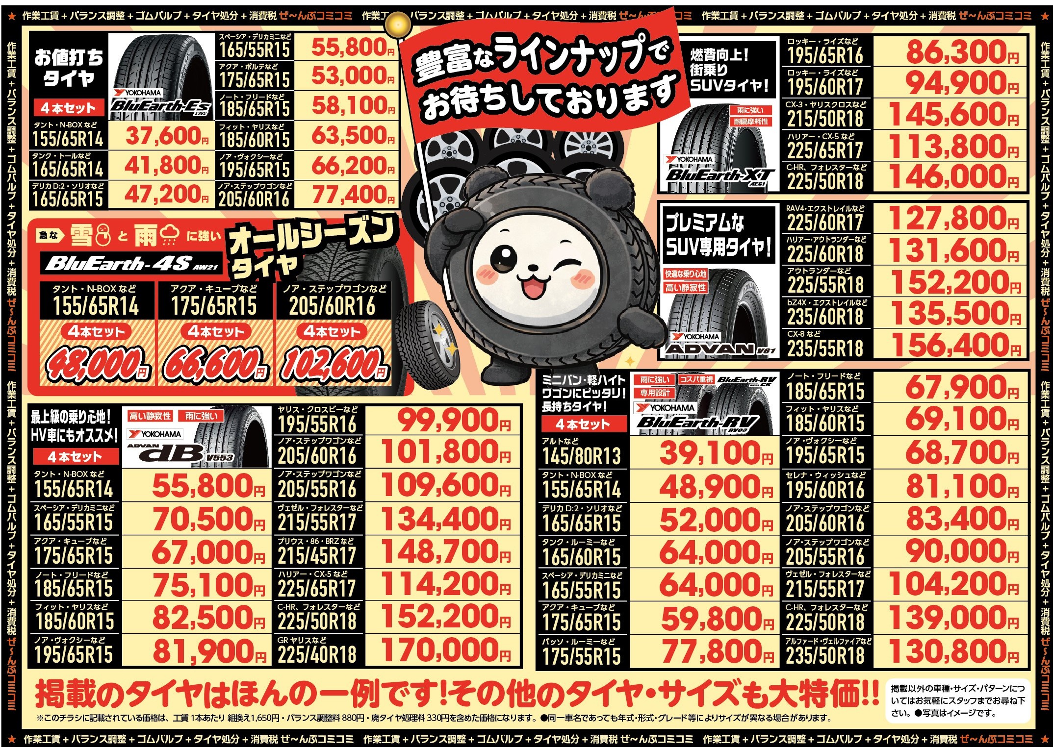 高品質なヨコハマタイヤを【ぜ〜んぶコミコミ価格】でご提供いたします!