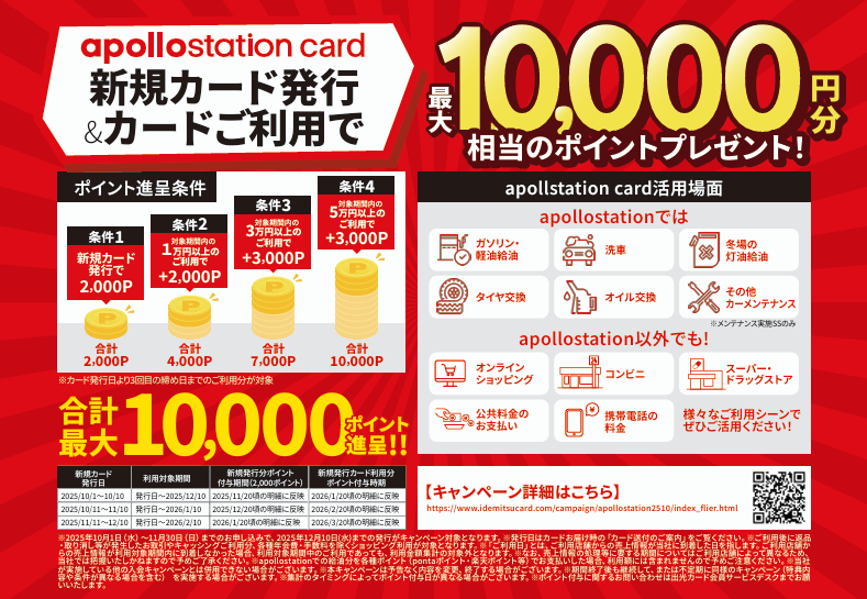 とってもお得なアポロステーションカード、是非作成下さい!(^^)!
