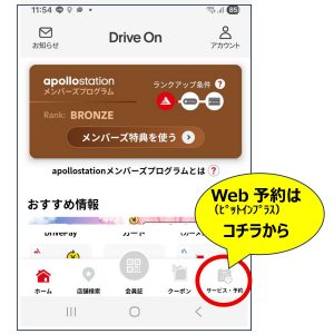 または、Drive Onアプリ「ホーム」画面右下の「サービス・予約」からご予約を!