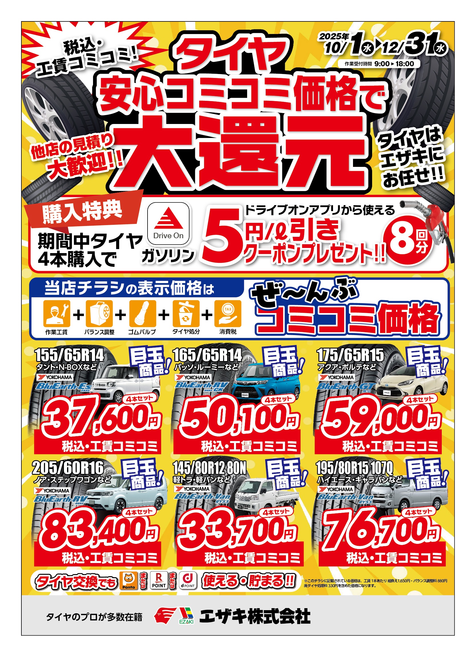 10~12月 エザキのタイヤキャンペーン開催中!