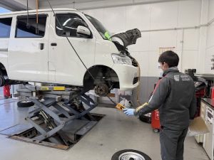 作業は、経験豊富なスタッフが丁寧に進めております。車検時の一コマをご覧ください。