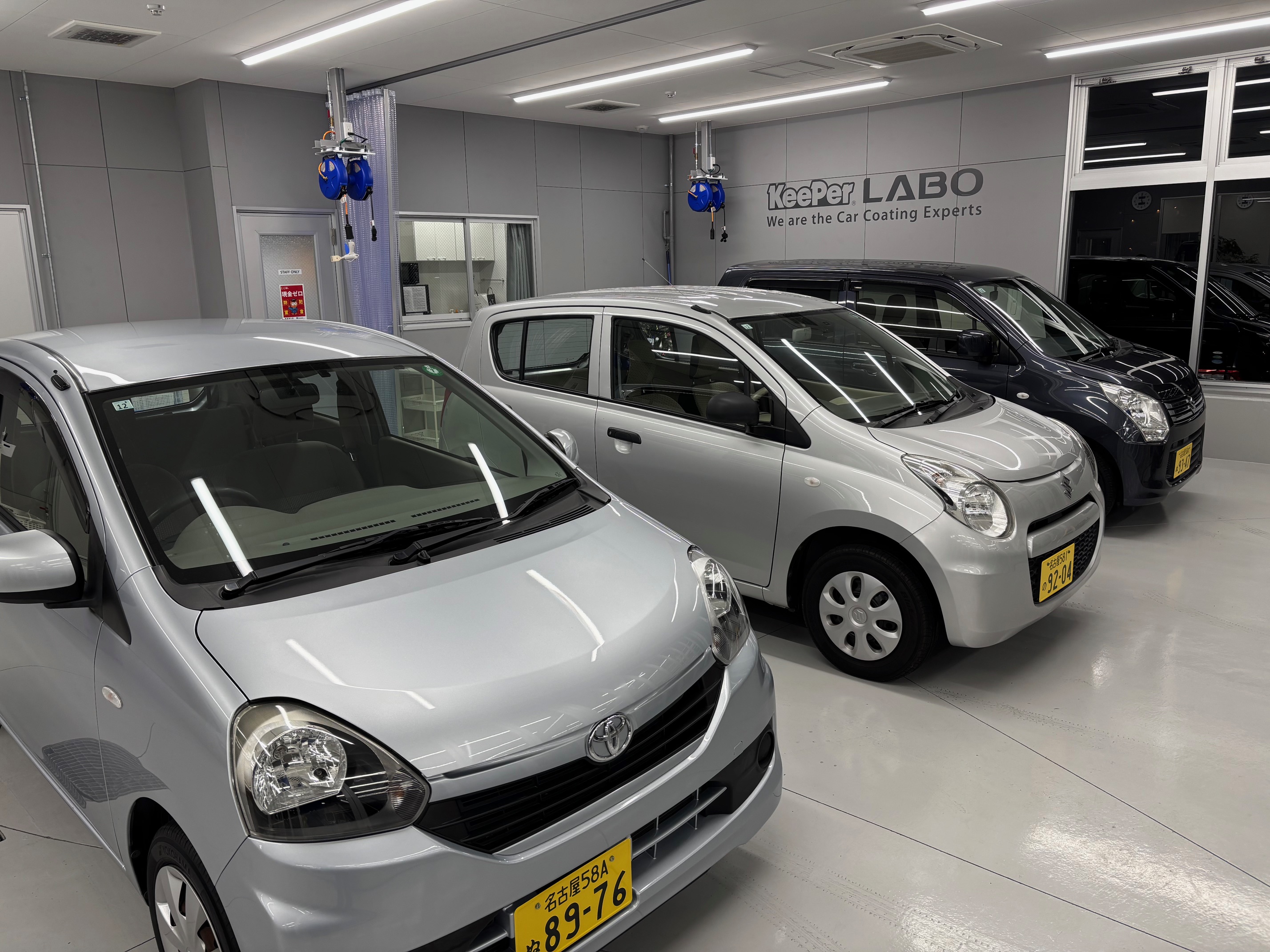 8台分のコーティング専用密閉ブースと、4台分の屋根付き手洗い洗車場を完備しております。