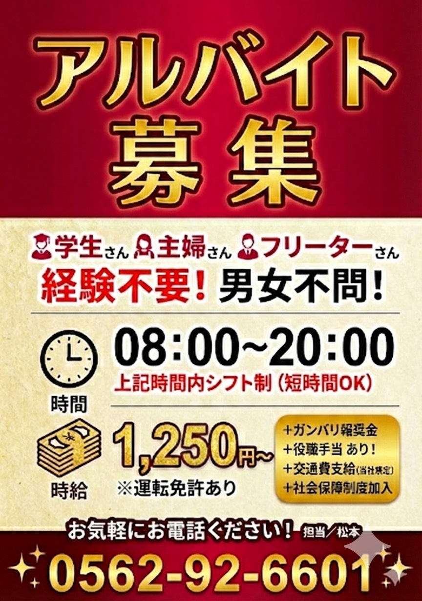 💰未経験OK【時給1,250円~】シフト制!アルバイト募集中♪